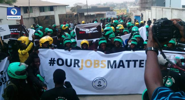 Gokada, Max.ng Riders, Others Storm Alausa, Protest Against Ban on Okada