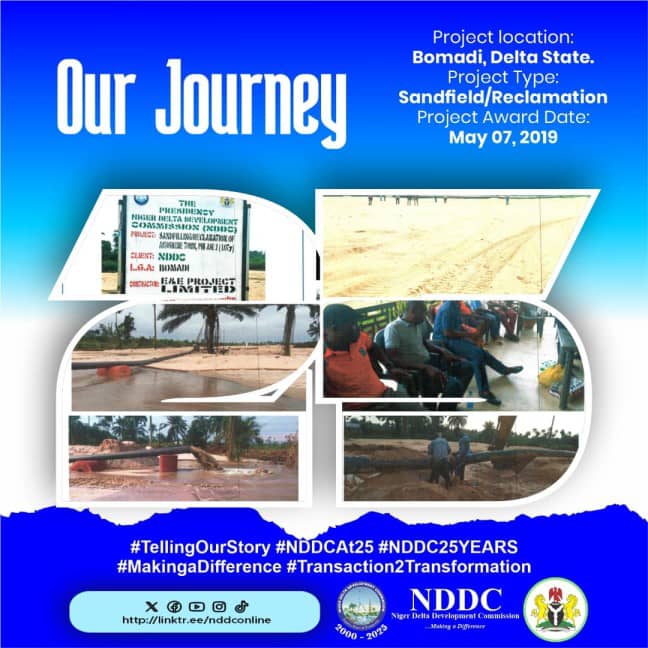 For instance in Akugbene town in Bomadi Local Government, Delta State, the NDDC carried out a sand filling project aimed at addressing environmental challenges to improve standard of living in the community.