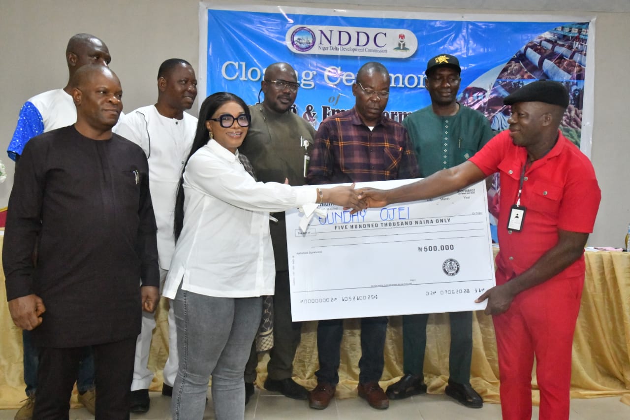 The NDDC Director, Agric and Fisheries presented cheques of N500,000 to each of the graduating trainees.